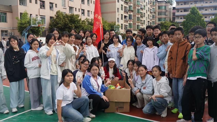 为缓解初三学子中考备考压力,以轻松心态迎战中考,4月3日上午,宜宾市南溪区第四中学校初三年级全体师生在学校篮球场举行“为爱冲刺 为你而战”2026年春期中考减压抢零食大战,11个班级的学子们在欢声笑语中释放压力、凝聚力量。