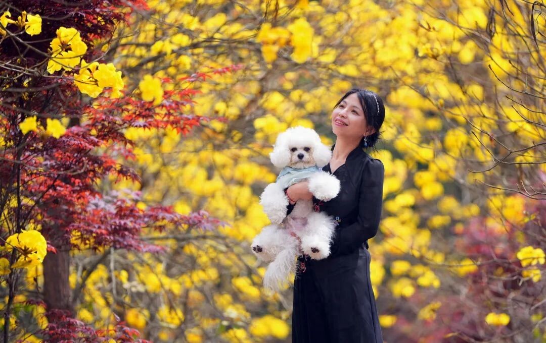 到黄花风铃木下的打卡人流