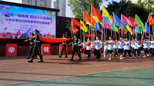 近日,遂宁市船山区城北小学2026年春季田径运动会在遂宁二中运动场正式举行。全校师生以饱满的热情齐聚赛场,共同参与了一场充满活力与朝气的体育盛会。