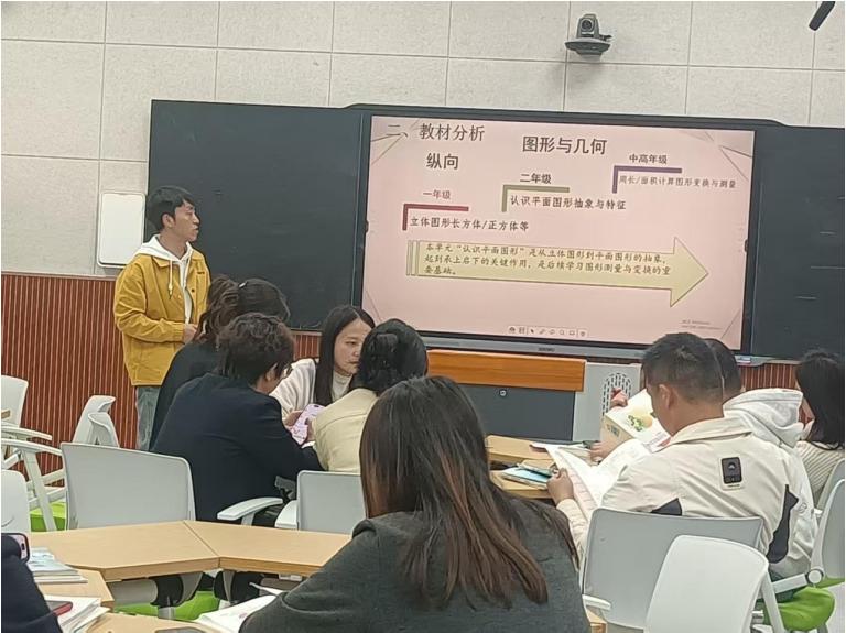 最后,南溪区福临小学校一年级老师付先桃围绕下册第二单元《认识平面图形》分享教学思路,提出以直观操作为主线,通过辨认、分类、拼组、折叠等活动,帮助学生建立平面图形表象,区分平面与立体图形,初步发展空间观念。
