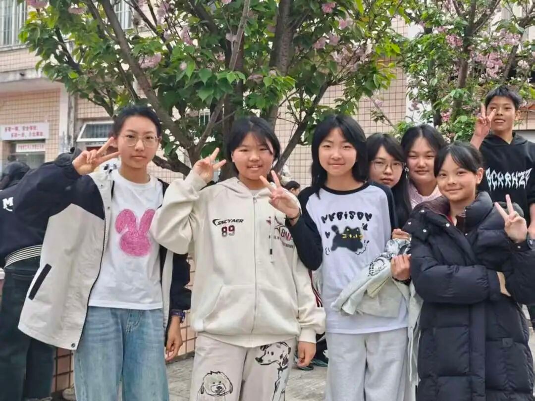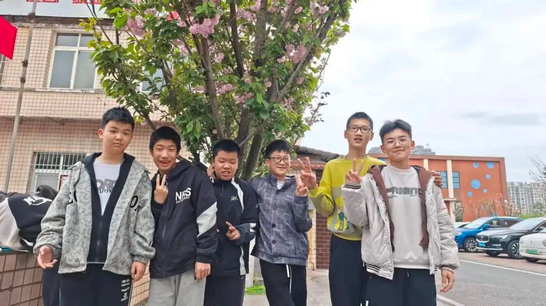 课外,几个同学站在樱花树下,笑着合影。花会谢,春天会走,但照片里的笑容,会留在记忆里很久很久。