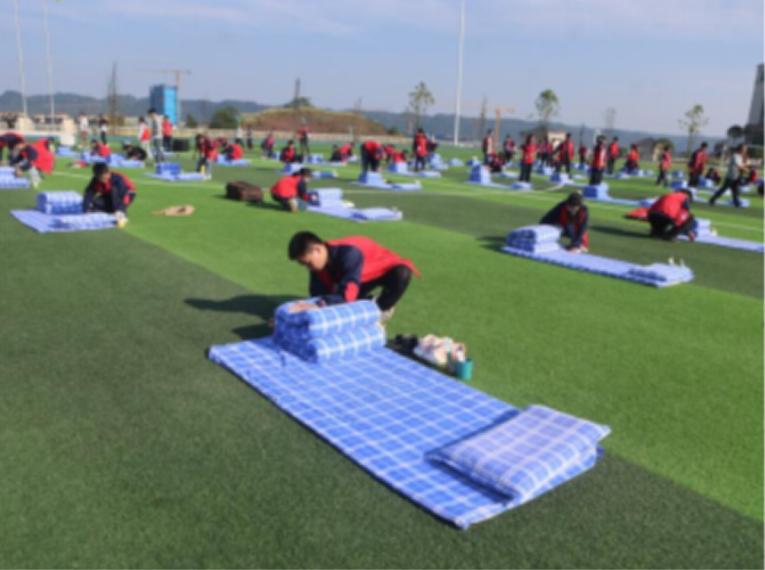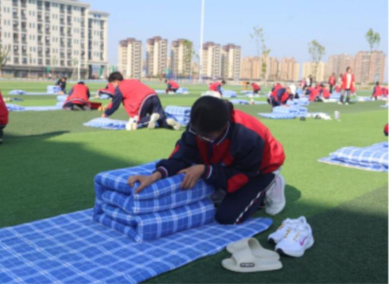 总决赛现场,参赛选手持学生证有序检录并领取参赛号码,全体参赛选手整齐列队于运动场,南溪职业技术学校政教处主任敬启明致比赛开幕词,他强调“一屋不扫,何以扫天下”的深刻内涵;参赛学生代表表达“以赛促练、以练促行”的决心。该校党委委员、副校长费玉春宣布总决赛正式开始,随着开赛指令响起,选手们快速投入其中,铺平床单、压实棉被、折叠整形,动作娴熟利落,短短十分钟内,一床床棱角分明、方正平整的“豆腐块”整齐排列于垫上。