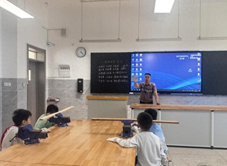 开课伊始,申老师围绕工具使用规范与安全守则展开细致教学,从握锯姿势到发力技巧,从木料固定到打磨要点,每一个环节都拆解细致、手把手示范,为孩子们的安全创作筑牢保障。