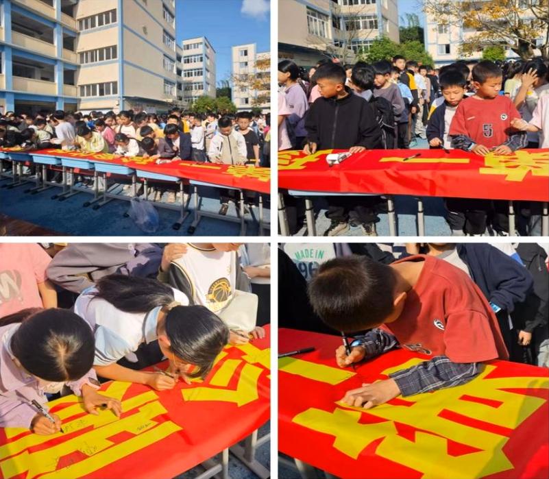 为进一步强化安全承诺,活动特设安全横幅签字仪式。在庄严的氛围中,江安县夕佳山镇底蓬小学校全体师生及家长依次在安全横幅上郑重签名。孩子们用稚嫩的笔迹签下安全承诺,家长们则以责任的名义为孩子保驾护航。这一环节将“安全出行”的理念从口头宣讲转化为共同的行动契约,实现了学校教育与家庭教育的同频共振。