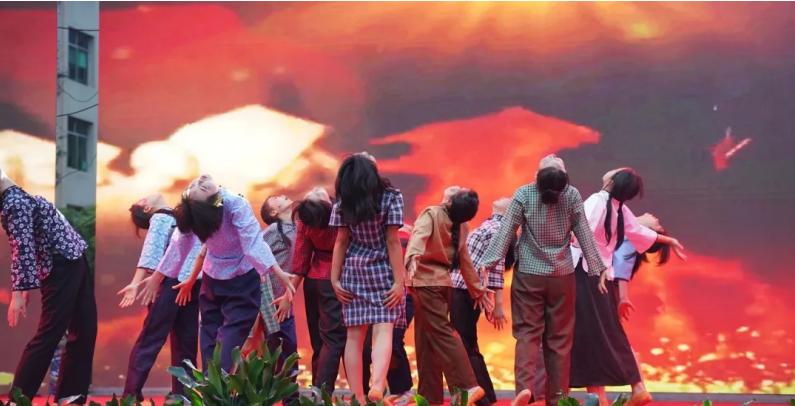舞台上,南溪区第四中学校七年级5班的《巾帼言证》用铿锵舞姿重现抗战女英雄的铮铮铁骨,烽火岁月中的家国情怀令人动容;该校八年级7班的情景剧《青春剧场不设限》用真实鲜活的校园故事展现青春的热烈与迷茫、成长与和解,当纸飞机载着梦想飞向夜空的那一刻,全场掌声雷动,无数同学热泪盈眶。