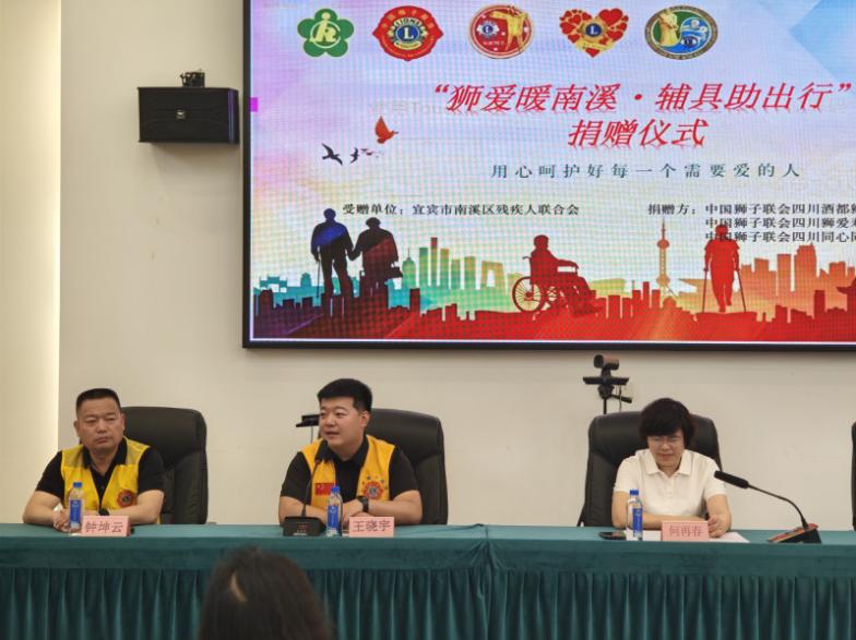为进一步完善基层残疾人康复服务体系,打通残疾人社区康复服务“最后一公里”,2026年4月17日,宜宾市南溪区辅助器具爱心捐赠仪式顺利举行。南溪区残疾人联合会理事长何再春,中国狮子联会酒都狮爱服务队、狮爱寿乡服务队、同心同德服务队的狮友代表们出席仪式,南溪区残疾人联合会副理事长李科主持捐赠仪式。各镇(街道)残联理事长及专干、辖区残疾人代表及志愿者等80余人共同参与本次活动。