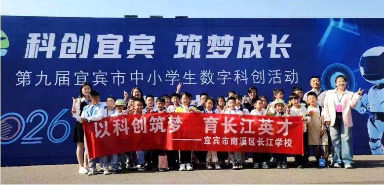 2026年4月18日,第九届宜宾市中小学生数字科创活动市级决赛在高县圆满举行。宜宾市南溪区长江学校30名学生在5位老师带领下,奔赴高县翰笙文化体育艺术中心、高县硕勋中学校赛场,参与机器人、无人机、创意智造、数字艺术、计算思维等多个项目角逐。