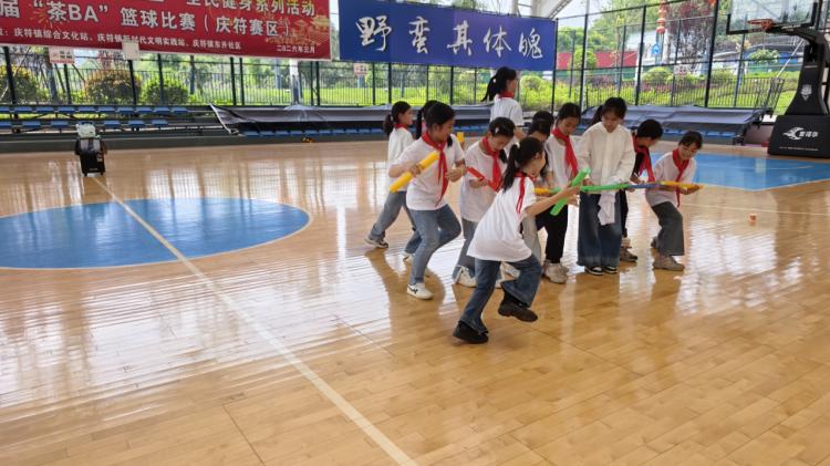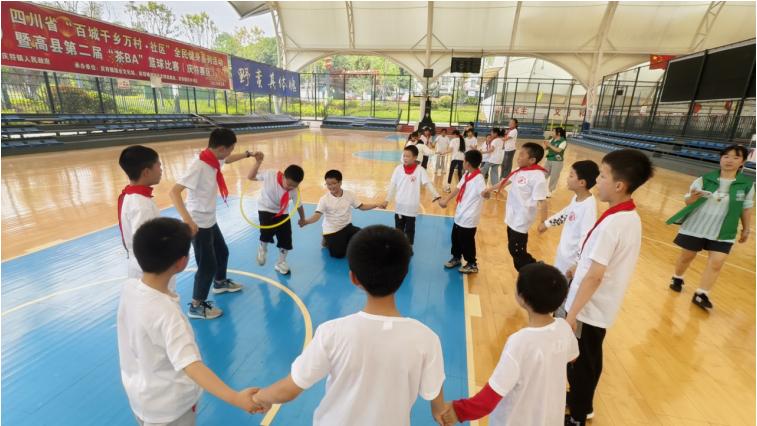 在高县体育馆,高县逸夫小学校学生们参与趣味体育团建活动,增强团队协作意识,展现昂扬向上的精神面貌。