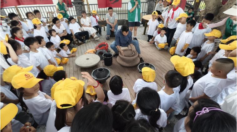 在花间学社,大家动手体验土火锅器具、面具、团扇、雕刻等非遗手工,领略传统技艺,提升文化自信。