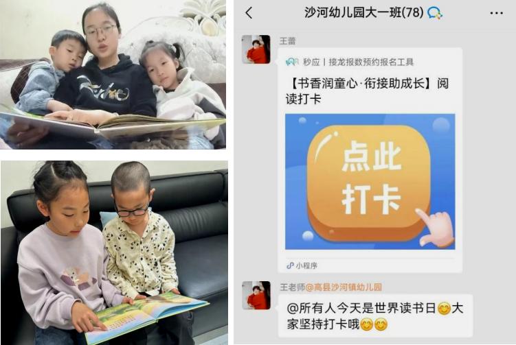 书香不止满园,更浸润万家。高县沙河镇幼儿园开启了亲子阅读21天打卡活动,家长与孩子依偎共读,让书香流淌在朝夕相伴的时光里,用一帧帧照片、一段段视频,珍藏最动人的亲子阅读瞬间。5月11日升旗仪式后,将揭晓并颁发“书香家庭”与“阅读之星”荣誉,让阅读成为代代相传的家风,让温暖陪伴点亮整个童年。