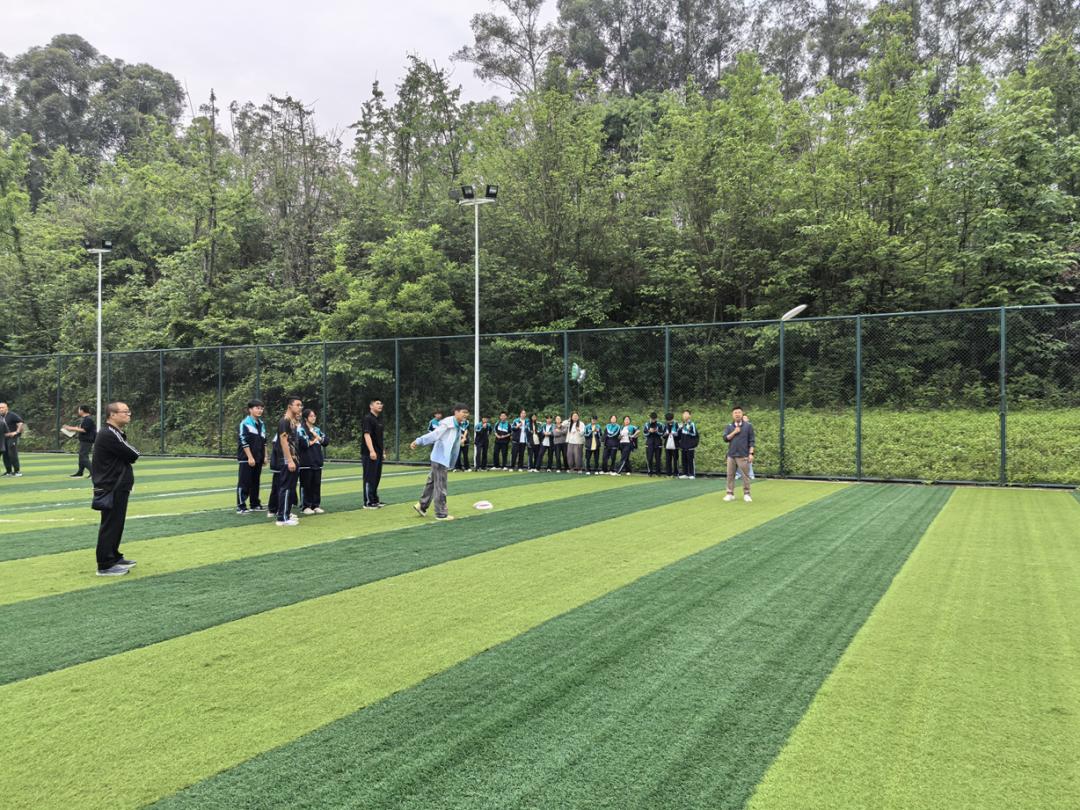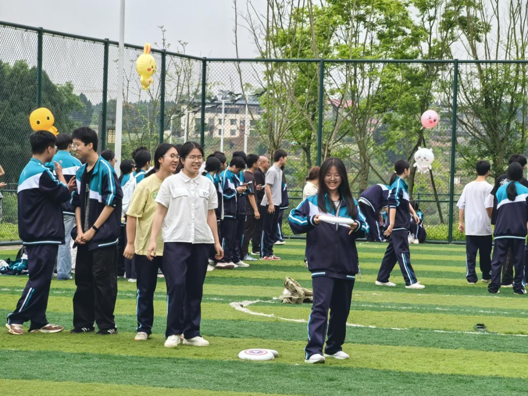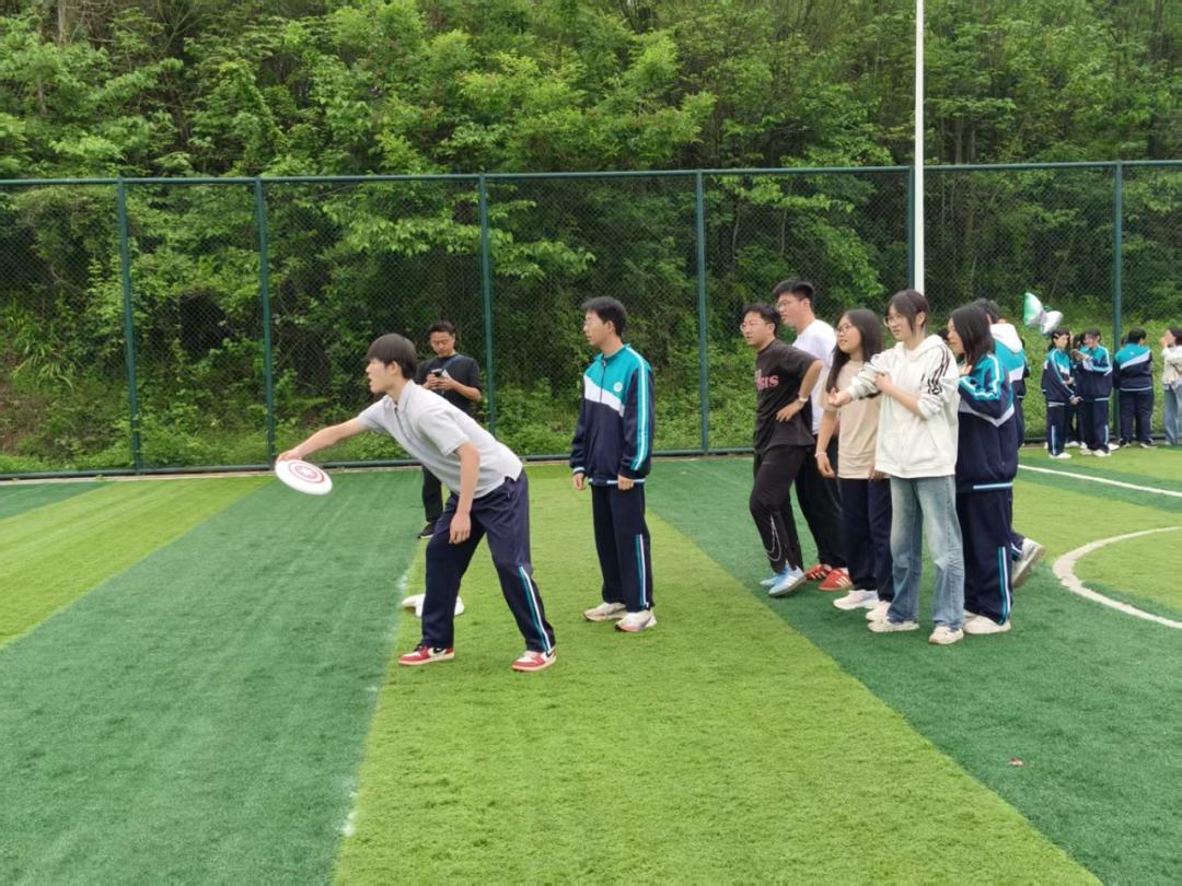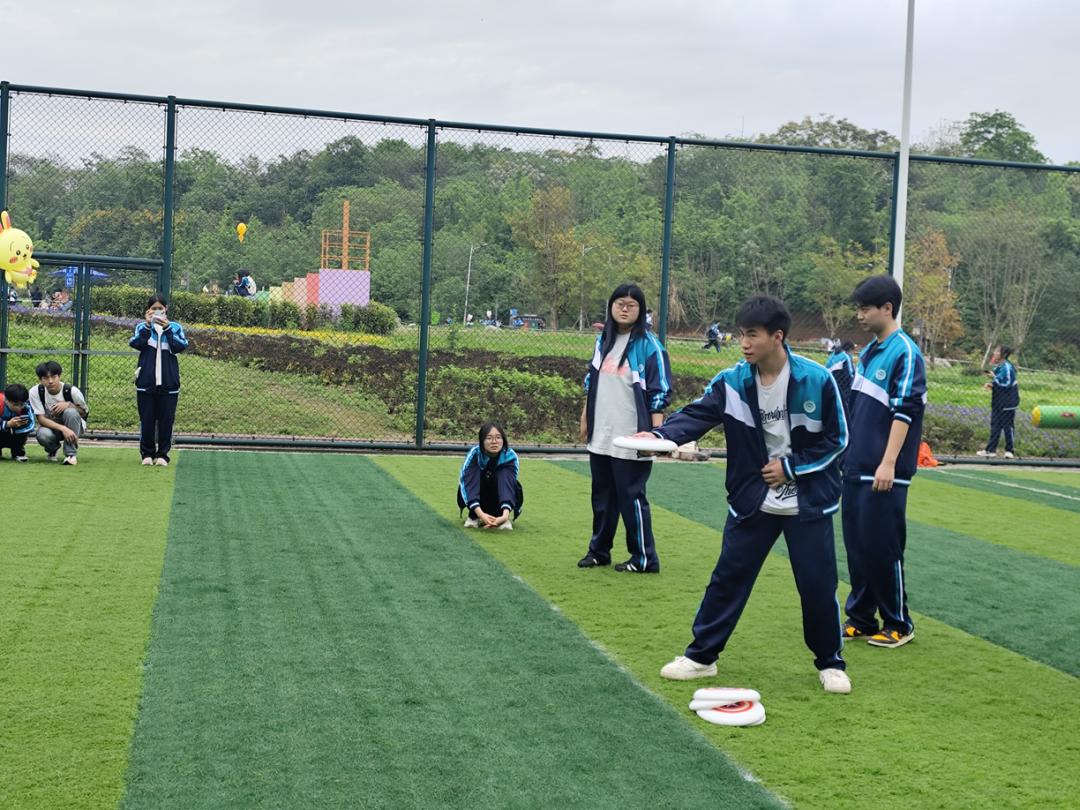 每班选派8名同学参赛,每人有5次投掷机会。哨声一响,飞盘在空中划出一道道优美的弧线。有的同学出手稳健,飞盘精准飞向目标区域,引来阵阵叫好;有的同学用力过猛,飞盘“跑偏”到了观众席,逗得大家哈哈大笑。大家轮流上场,互相加油打气,比分你追我赶,现场气氛热烈又欢乐。