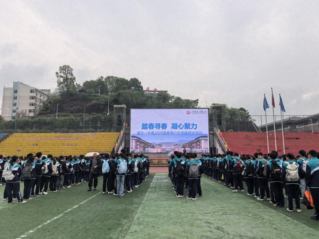 2026年4月14日清晨,天空飘起了细细的雨丝。但这一点点小雨,丝毫没有影响遂宁一中高一年级全体师生的热情。大家早早来到操场整装待发,脸上写满了期待与兴奋。这一天,我们走出课堂,奔赴西山公园,开展了一场以“踏青寻春,凝心聚力”为主题的春季户外团建研学活动。我们用脚步丈量春天,用欢笑凝聚情谊,用团结书写青春。