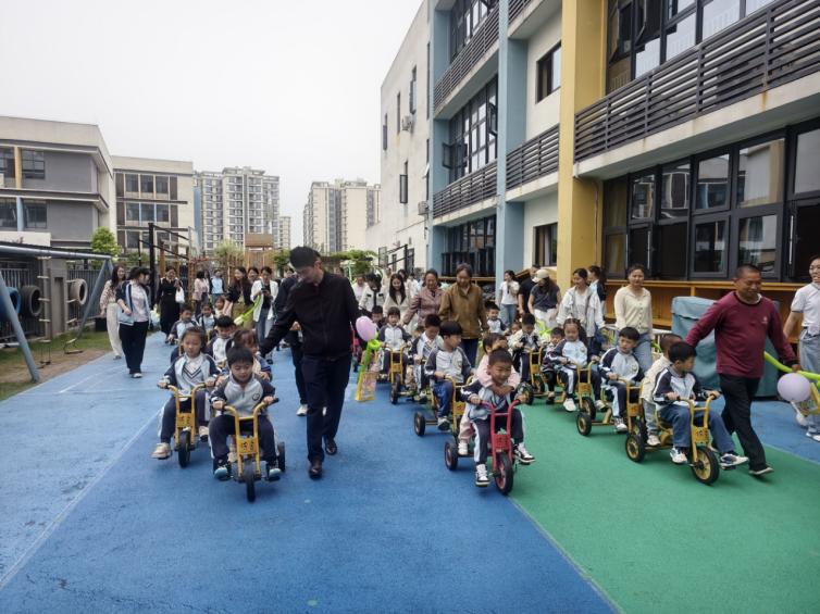 “安小兵环游”沉浸式游园环节,爱心骑行车队护航新生宝贝畅游七大活动站点,提前熟悉园所环境,感受生态育人的温暖底色。亲子律动《身体音阶歌》、“气球蹦蹦跳”活力满满,在互动中拉近亲子距离、唤醒身体感知。