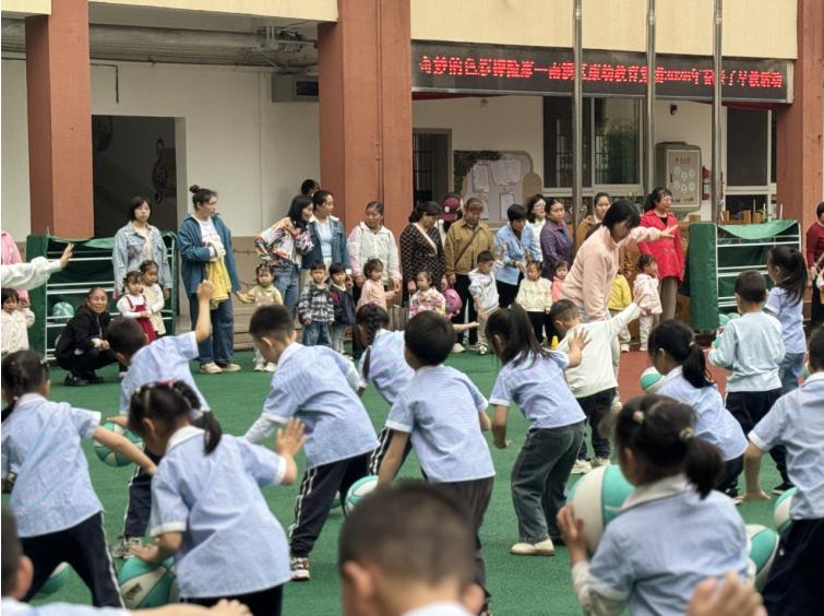 紧随康安园区步伐,福临幼儿园延续活动主题,以自然游戏、亲子互动为核心,点亮福临园区早教新体验。清晨的紫色签到区,家长与孩子共同按下彩色手印,留存专属成长印记;庄严的升旗仪式后,园所早操展示同步登场——竹竿舞、跳皮筋、花样篮球等传统与现代融合的内容,尽显福幼阳光向上的精神风貌,赢得在场家长一致点赞。