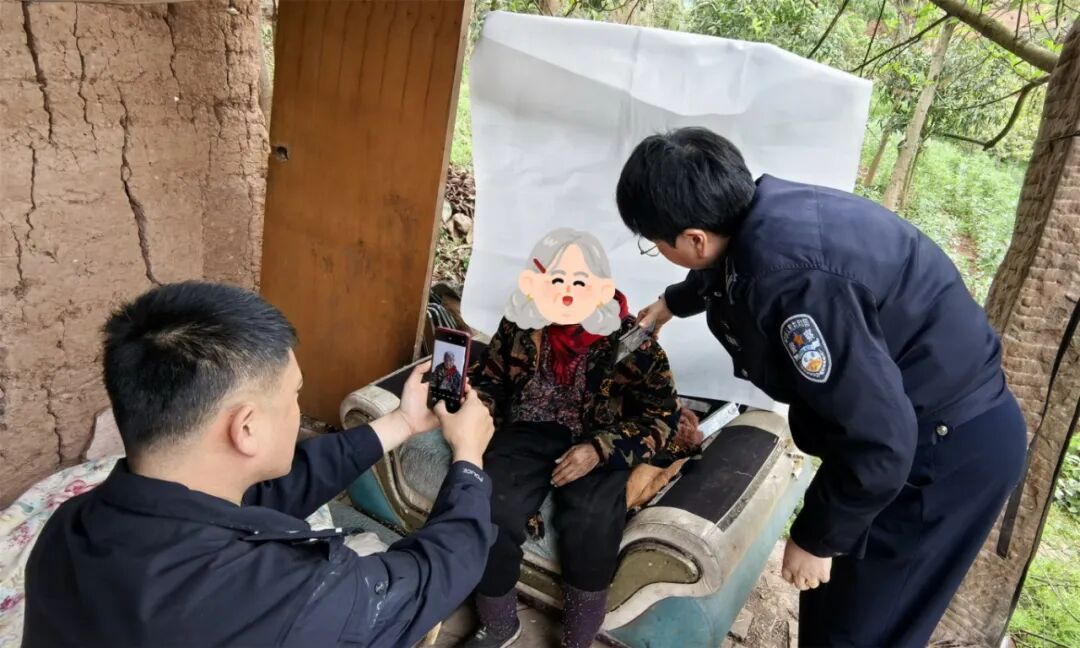 4月中旬,老人的女儿抱着最后一丝希望,来到凉亭警务室求助,希望能够解决老人身份证办理难题。得知老人居住地址属于蓬莱派出所管辖后,警务室民警没有一丝推诿,没有一点敷衍。他们一边耐心安抚家属情绪,一边与蓬莱派出所取得联系,详细沟通老人的实际困难。经过两所民警快速对接、紧密联动,当即决定特事特办,为老人开通专属上门服务绿色通道,全力解决老人办证难题,绝不让年迈卧床的老人再受半点奔波之苦。约定好服务时间,两所民警一刻也不曾耽误,携带照相设备和办证所需的材料,驱车前往老人所在的村。因通往老人家中的道路崎岖狭窄,车辆无法直接通行,民警便将警车停在村口后,沿着坑洼的小路和狭窄的田埂徒步前行,一路辗转来到老人家中。