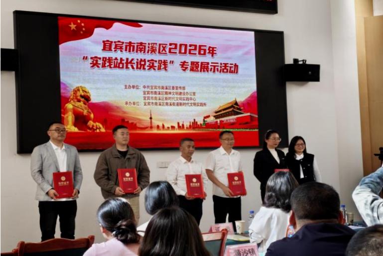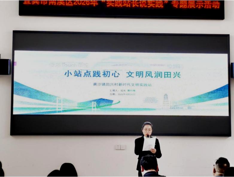 4月29日,宜宾市南溪区黄沙镇田兴村新时代文明实践站参加了南溪区2026年“实践站长说实践”专题展示活动。本次活动是由各镇(街道)推荐选出各村(社区)中的1个实践站代表同台竞技、集中展示。南溪区黄沙镇推选的田兴村新时代文明实践站以《小站点践初心·文明风润田兴》为题进行展示田兴村文明实践工作的特色与实力,凭借扎实举措、鲜活案例、暖心成效脱颖而出,最终荣获三等奖。