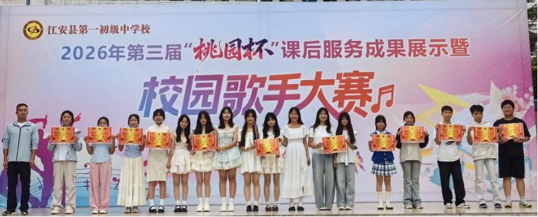 本次“桃园杯”校园歌手大赛,不仅是江安县第一初级中学校课后服务成果的生动展示,更是一次五四精神的青春实践。它以歌声为纽带,将爱国情怀、青春理想与校园文化紧密结合,既为同学们提供了展现自我的平台,也让五四精神在新时代青少年的心中生根发芽。江安一中将继续依托课后服务平台,开展更多富有青春气息、文化内涵的校园活动,让同学们在多元成长中,书写属于自己的青春华章。(王丽 来源:江安县第一初级中学校)